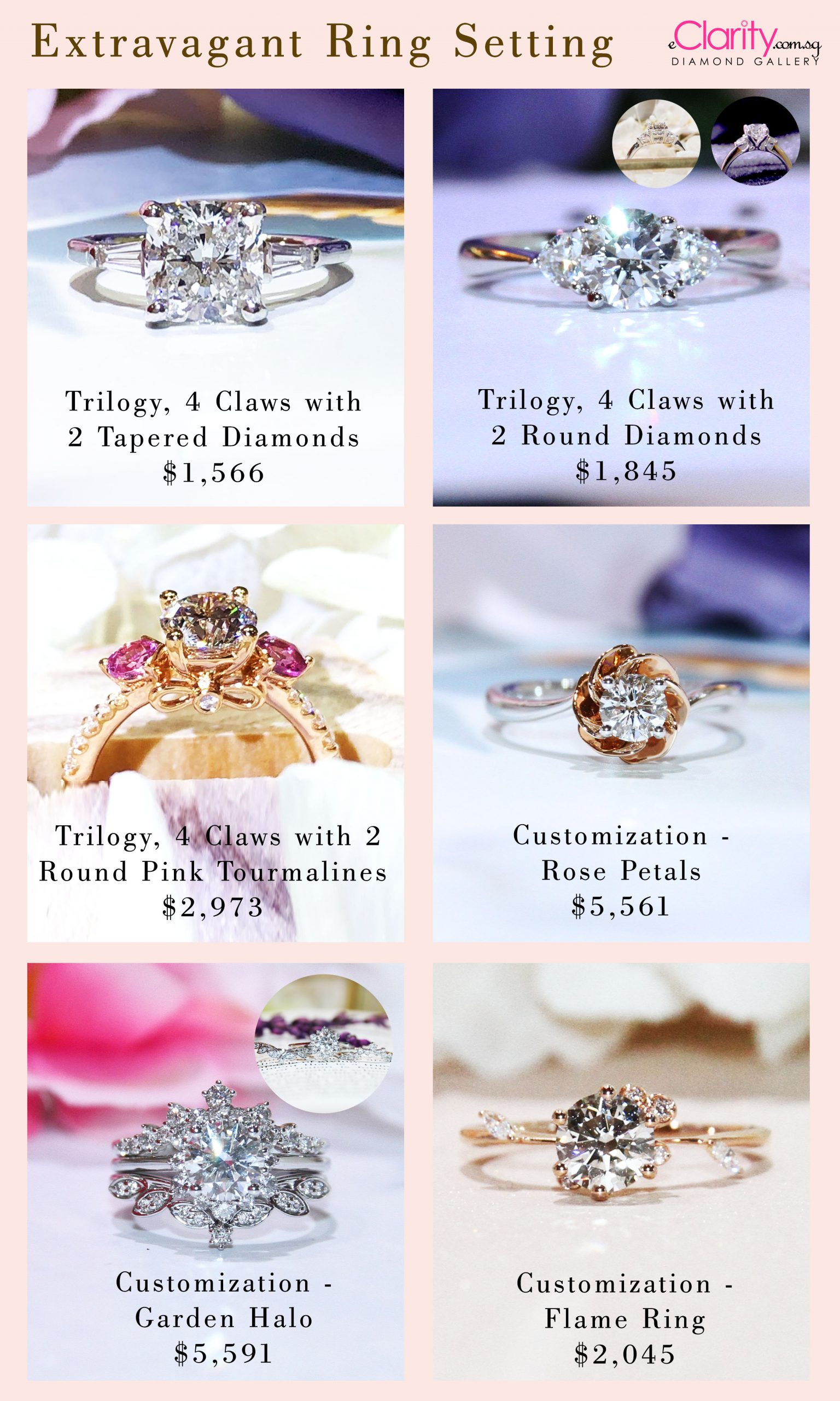 Proposal ring designs, Part 6. The unique and stunning intricacy of the bespoke engagement rings here perfectly complement her who is full of poise, gracefulness and confidence.
