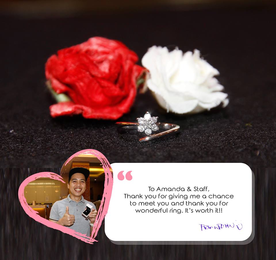 “To Amanda & Staff, thank you for giving me a chance to meet you and thank you for wonderful ring. It’s worth it!!” – John