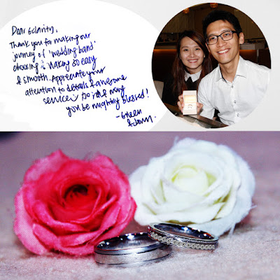 “Dear eClarity, thank you for making our journey of ‘wedding band’ choosing & making so easy & smooth. Appreciate your attention to details & awesome service? 加油& may you be mightily blessed!”-Eileen & Donn