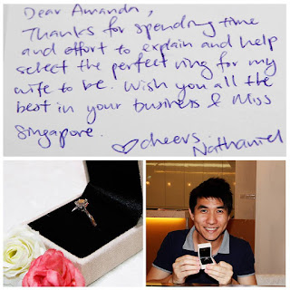 “Dear Amanda, thanks for spending time and effort to explain and help select the #perfectring for my wife to be. Wish you all the best in your business & Miss Singapore.” – Nathaniel