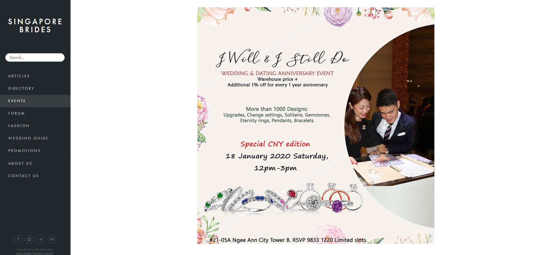 To register a slot for the event: https://singaporebrides.com/wedding-show/18-jan-wedding-dating-anniversary-event/