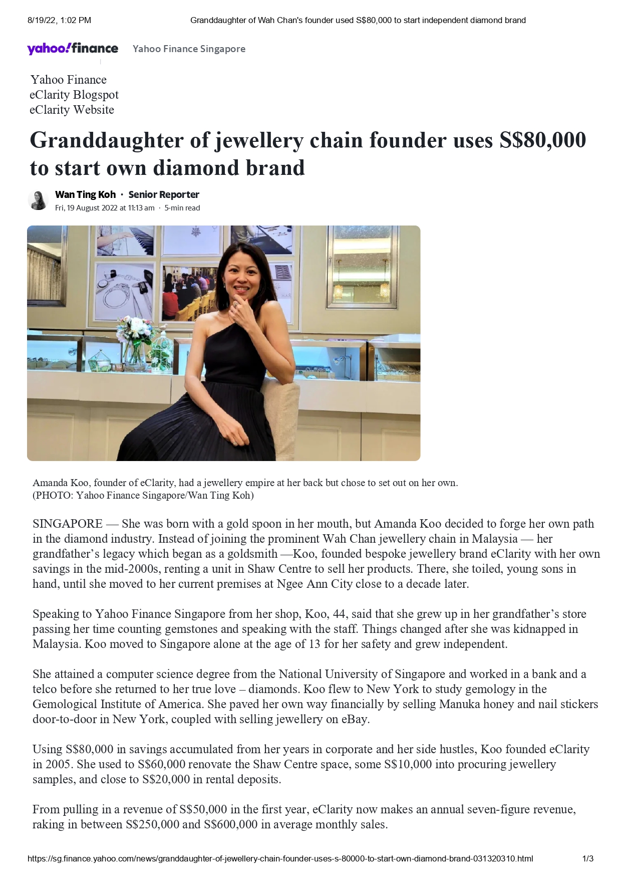 #eclarity #eclaritysg #article #event #featuredarticle #jewelleryarticle #yahoofinance #yahoo #onlinearticle #interview #articles #amandakoo #gemologist #GIAcertified #IGIcertified #labgrowndiamonds #jewelleryrental #naturaldiamonds #onlinediamondsdatabase #fempreneurs #entrepreneurship #motivational #empoweringwomen #ba.singapore #BAsg #TheSampleLine #TSL #thenewforever #entrepreneur
